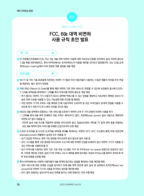 FCC, 6GHz 대역 비면허 사용 규칙 초안 발표 페이지 정보 등록일 : 20-07-03 조회 : 3,932 본문 FCC, 6GHz 대역 비면허 사용 규칙 초안 발표 목록 이전글Zipline, 미국에서 코로나19 대응 의약품 드론 배송 조기 추진 20.07.03 다음글백악관, 5G 보안을 위한 국가 전략 발표 20.07.03