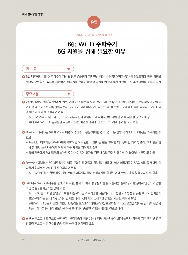 6㎓ Wi-Fi 주파수가 5G 지원을 위해 필요한 이유 페이지 정보 등록일 : 21-01-04 조회 : 3,718 본문 6㎓ Wi-Fi 주파수가 5G 지원을 위해 필요한 이유 목록 이전글유럽 위원회, EU 2025-2030년 주파수 로드맵 공개 21.01.04 다음글네덜란드, 5G 주파수 경매 개시 21.01.04