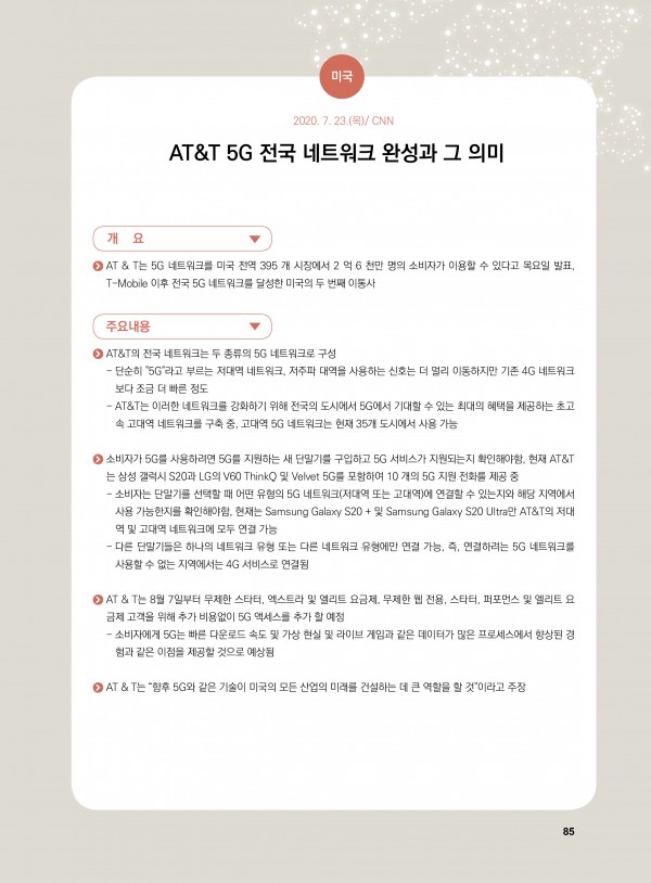 AT&T 5G 전국 네트워크 완성과 그 의미 페이지 정보 등록일 : 21-01-04 조회 : 3,756 본문 AT&T 5G 전국 네트워크 완성과 그 의미 목록 이전글Qualcomm, 정부와 C-V2X 자율주행차 시험 협업 21.01.04 다음글유럽 위원회, EU 2025-2030년 주파수 로드맵 공개 21.01.04
