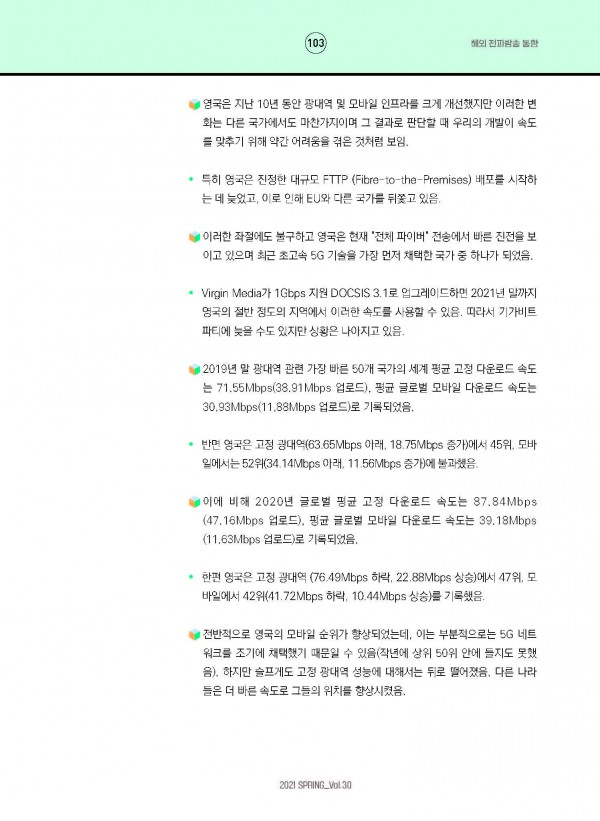 2020년 영국 광대역 및 모바일 속도 vs 세계 주요국 비교
