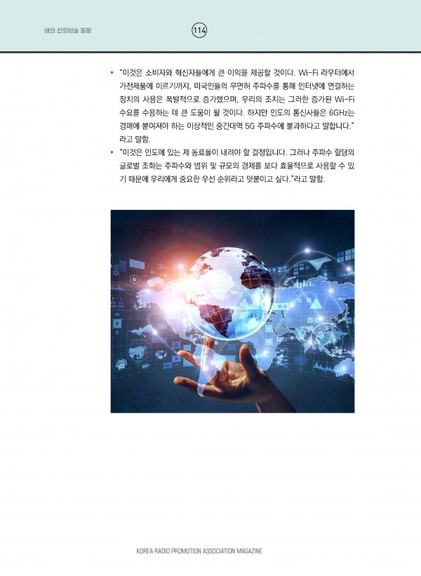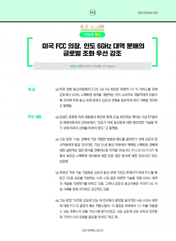 미국 FCC 의장, 인도 6GHz 대역 분배의 글로벌 조화 우선 강조 페이지 정보 등록일 : 21-04-14 조회 : 3,463 본문 미국 FCC 의장, 인도 6GHz 대역 분배의 글로벌 조화 우선 강조 목록 이전글영국 Ofcom, 모바일 및 광대역 ISP 비교 점수 발표 21.04.14 다음글미국 FCC, 5G 시스템 구축 관련 무선 안테나 설치 규정 개정 21.04.14